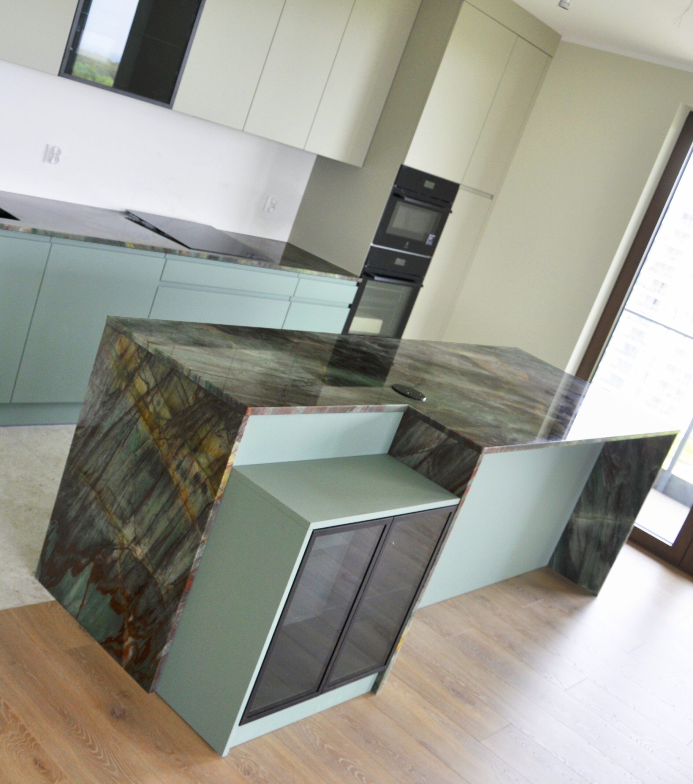Green Canyon to zielony kwarcyt naturalny pochodzący z Brazylii. Unikalny kolor o wysokiej odporności, stosowany wewnątrz pomieszczeń.